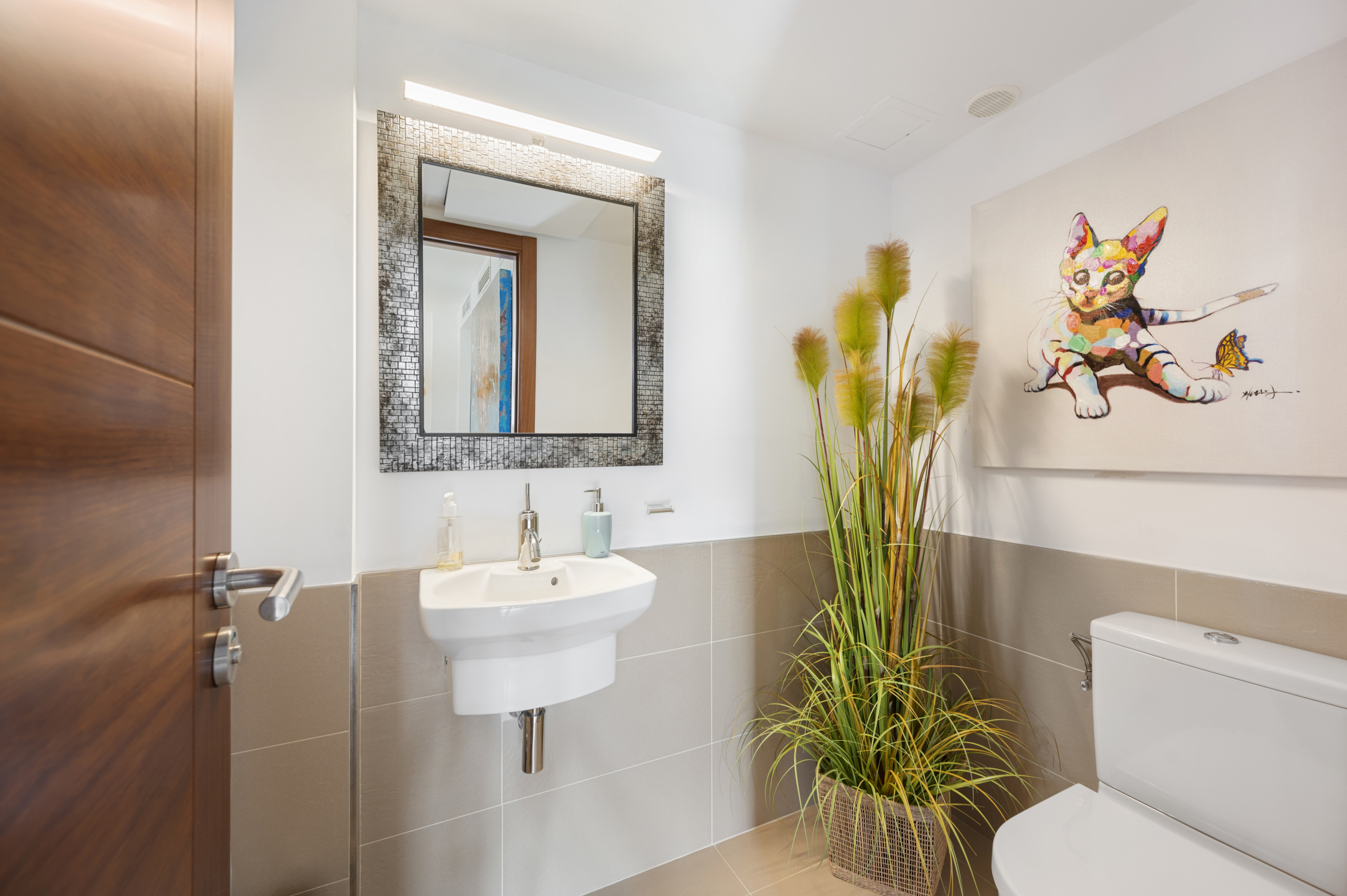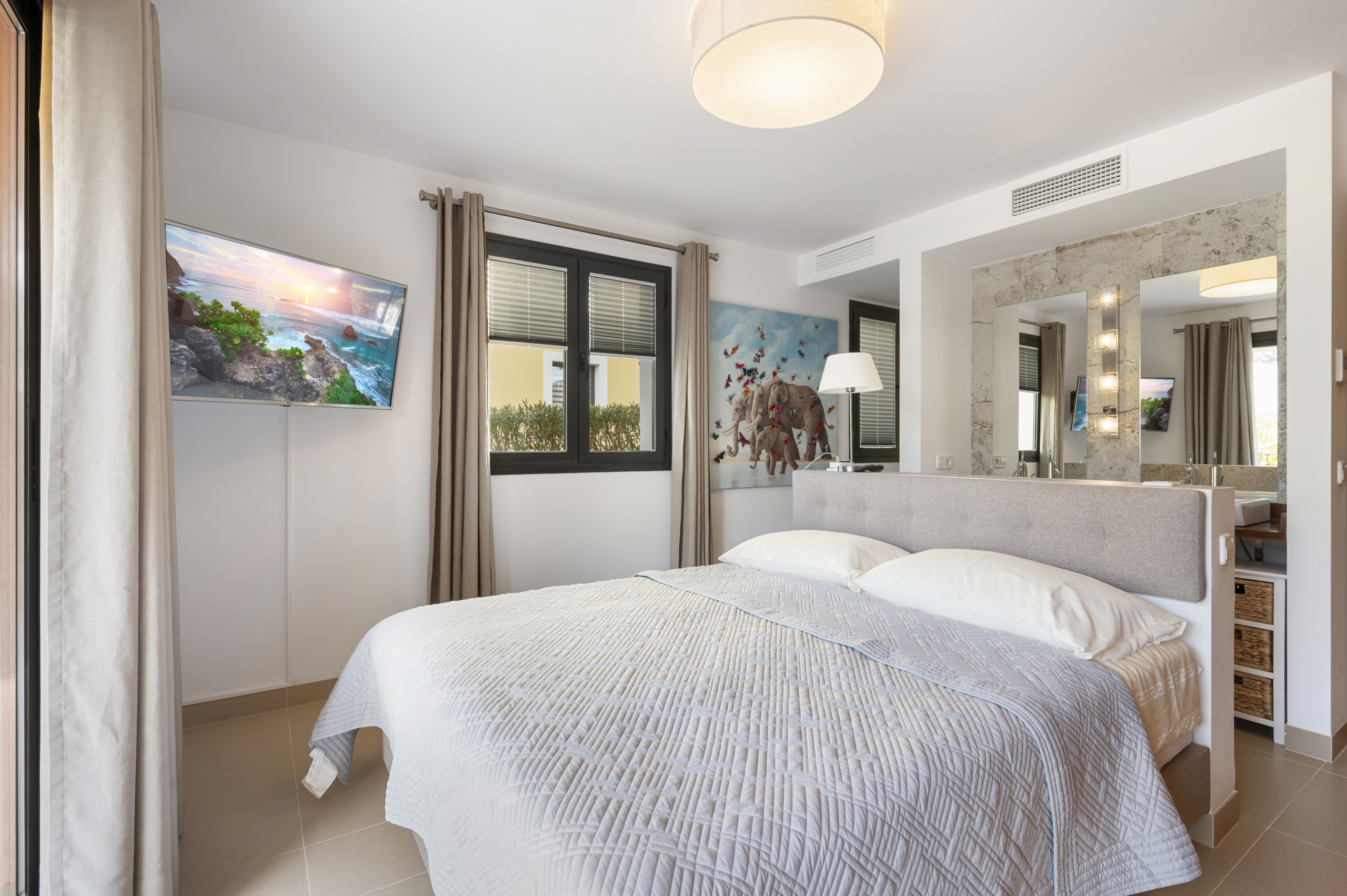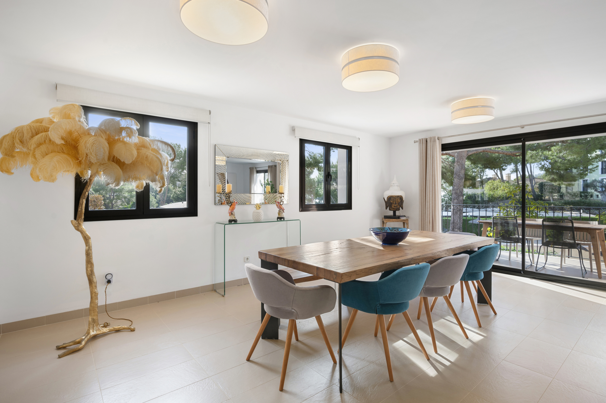 Die Residenz ZINNIA OCEAN verfügt über 6 Gebäude mit insgesamt 32 modernen Wohnungen und Penthäusern. Der Gemeinschaft stehen zwei Swimming-Pool-Bereiche, wundervoll angelegte Gemeinschaftsgärten und ausreichend Parkplätze zur Verfügung. Die Wohnung ist mit hochwertigen und exklusiven Möbeln eingerichtet. Das Wohnbereich ist sehr edel und großzügig mit Zugang zur wunderschönen Terrasse. Von der moderne Küche hat man Zutritt zum schönen privaten Garten. Im Untergeschoss befindet sich ein geräumiger Bereich der sich ideal als Gästewohnung oder Fitnessraum eignet. Die Anlage verfügt über einen sensationellen ca. 1.000 m2 großen mediterraner Garten. Mit 4 Schlafzimmer und 3 Badezimmer, sowie ein Gäste WC gibt es genügend Platz . Alle Schlafzimmer haben schöne Einbauschränke. Die Lage dieser Designerwohnung ist top, da in strandnähe. Einrichtung und Dekoration kann nach Absprache erworben werden
