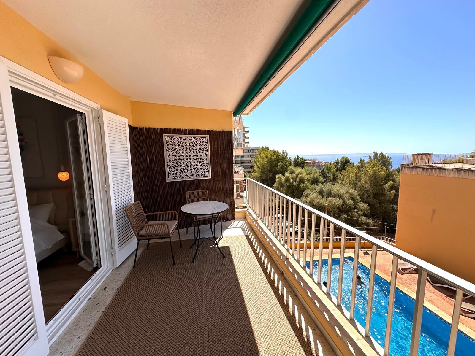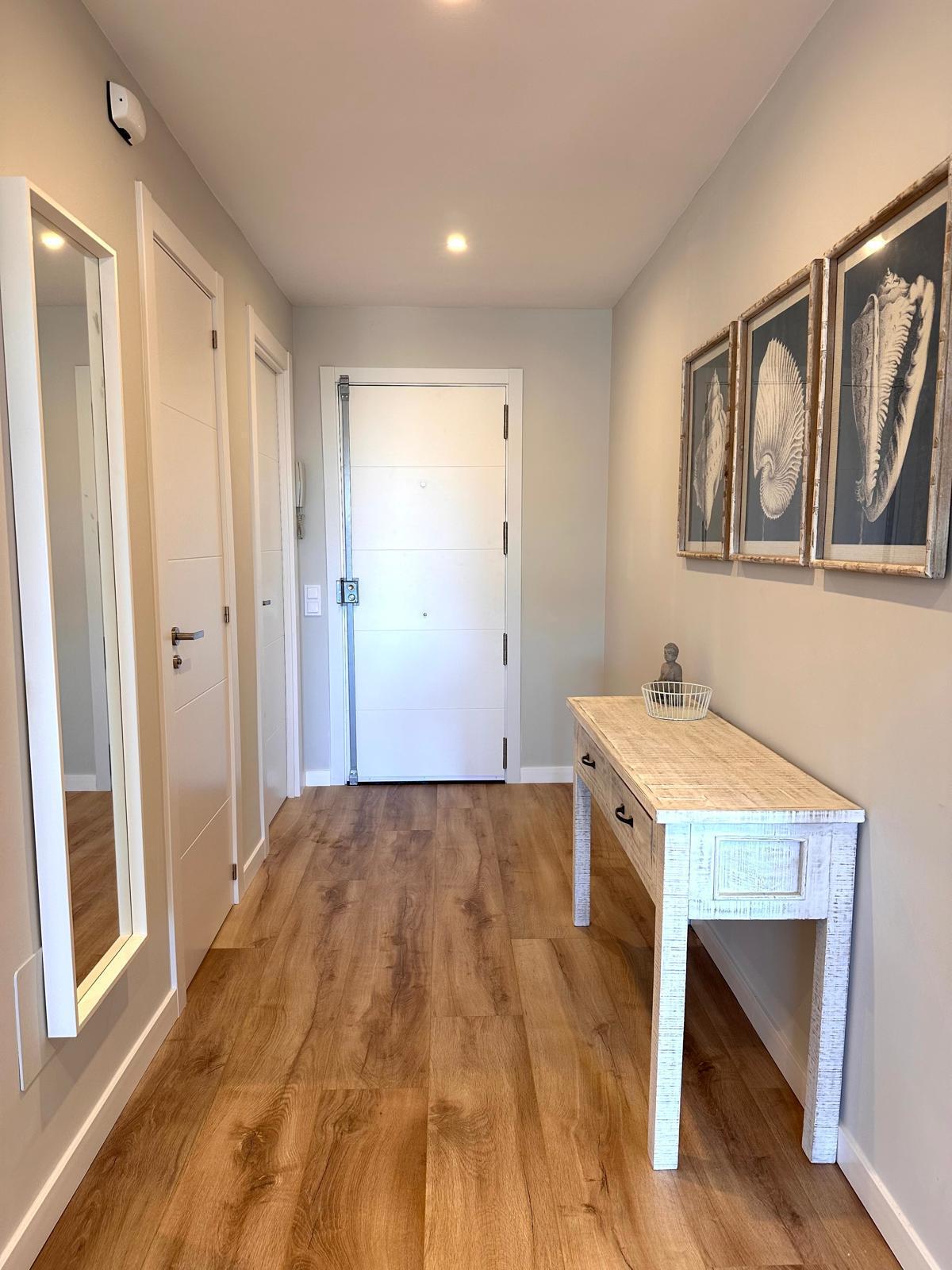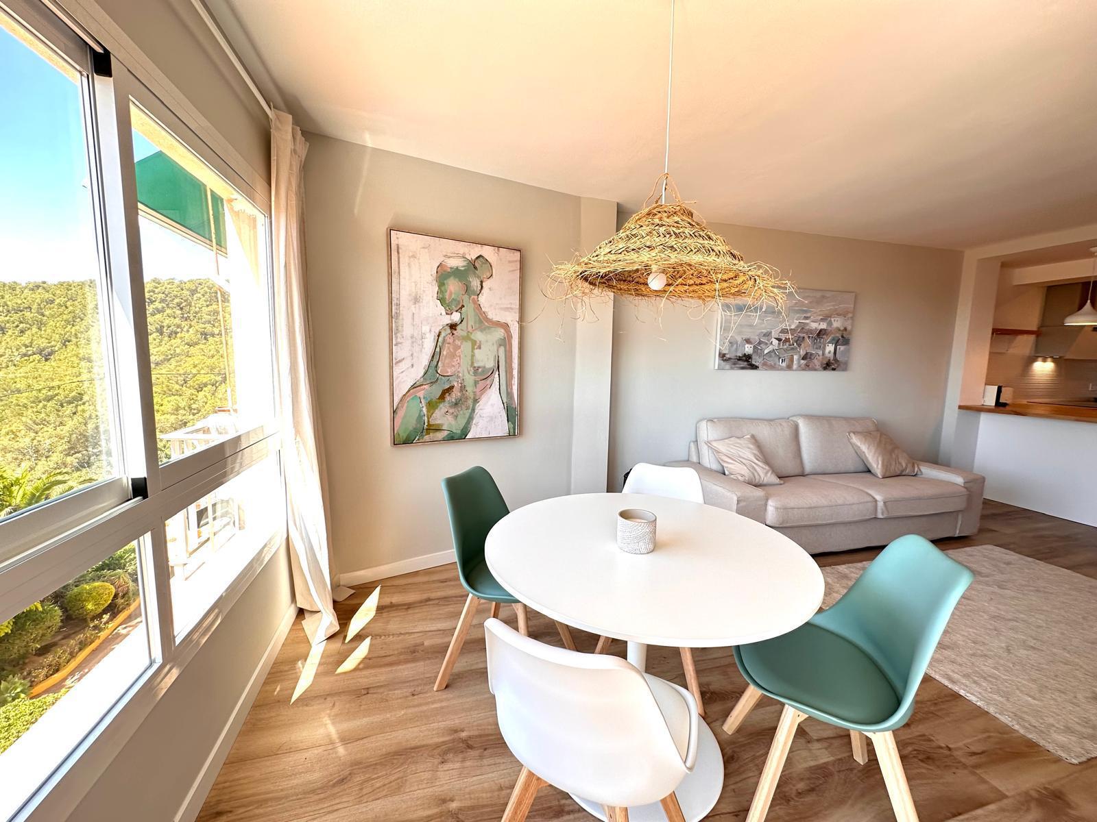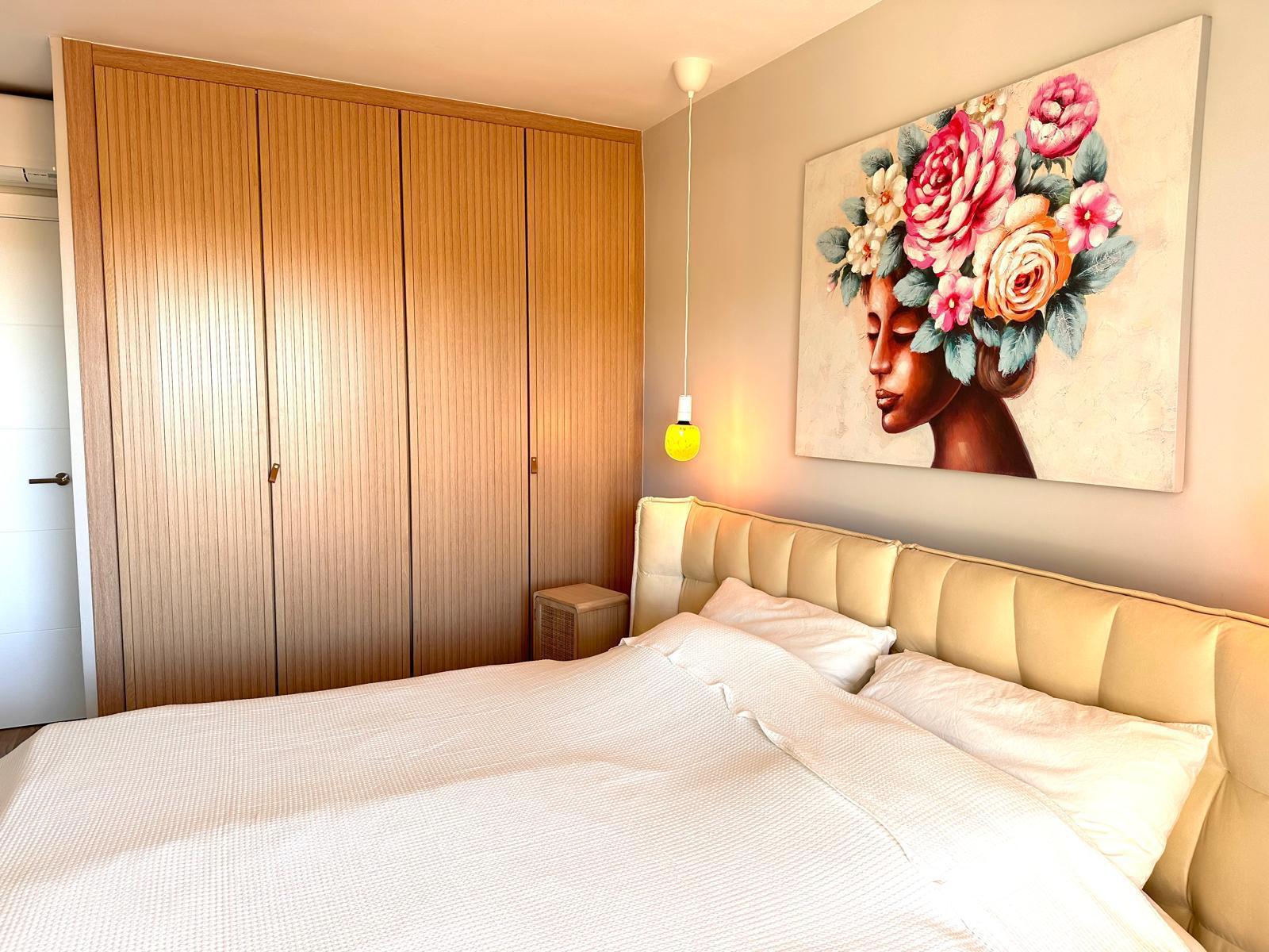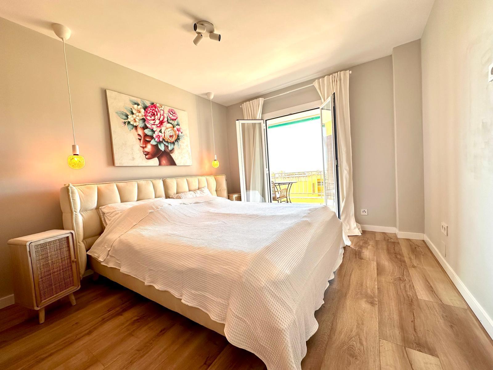 Diese neu renovierte Immobilie bietet einen hohen Standard und befindet sich in erstklassiger Lage mit Blick auf das Meer und die Berge. Mit einer optimalen Größe von 83 m² verfügt sie über eine hochwertige und moderne Ausstattung, die auf Wunsch auch komplett möbliert sein kann. Die offene und helle Raumaufteilung ermöglicht einen direkten Zugang zu einem großzügigen Balkon. Die offene Wohnküche ist mit modernen Geräten und einer großzügigen Arbeitsfläche ausgestattet. Es gibt zwei Schlafzimmer, die beide Zugang zum Balkon haben, sowie zwei moderne Badezimmer, die mit passiver Deckenbeleuchtung und Mosaiken gestaltet sind. Zusätzlich gibt es eine Waschküche mit Anschluss für eine Waschmaschine. Besondere Merkmale sind eine dekorative Akustikwand mit einem Smart-TV im Wohnzimmer, ein großer Einbauschrank im Hauptschlafzimmer und eine Alarmanlage mit Videostreaming auf das iPhone. Alle Zimmer sind mit einer Klimaanlage (warm/kalt) ausgestattet. Das nagelneue Inventar, einschließlich einer maßgefertigten Küche, ist im Kaufpreis enthalten. Der Energieausweis sowie alle erforderlichen Unterlagen sind vorhanden und werden bei der Besichtigung vorgelegt. Im Innenhof der ruhigen Anlage gibt es einen Gemeinschaftspool mit Dusche und Sonnenliegen. Die Bewohner sind freundlich und ruhig. Ein exklusiver, schattiger Parkplatz kann für 25.000 € erworben werden. Gemeinschaftskosten pro Monat: 100 € inkl. Wasser Strom / Monat: 45 € ca., nach Verbrauch