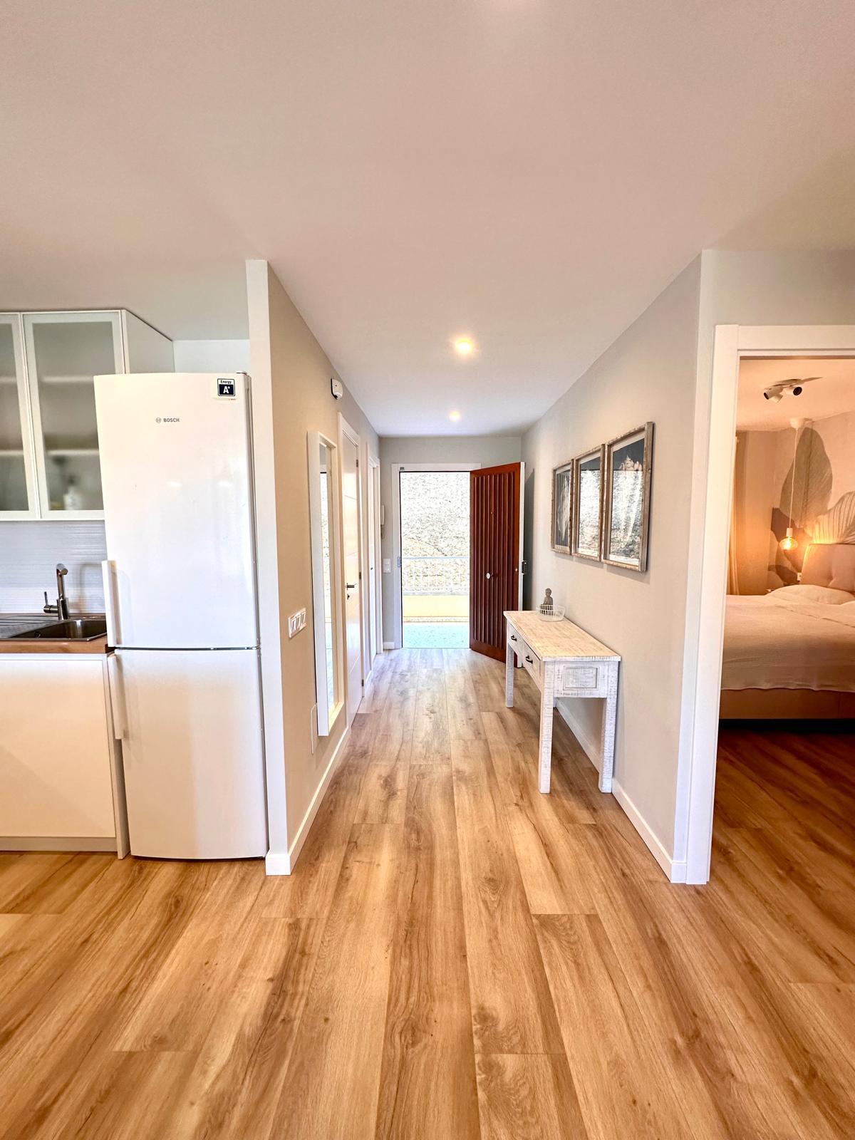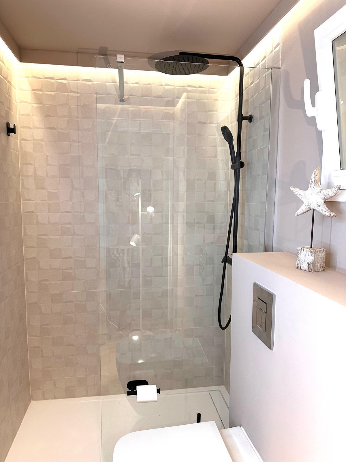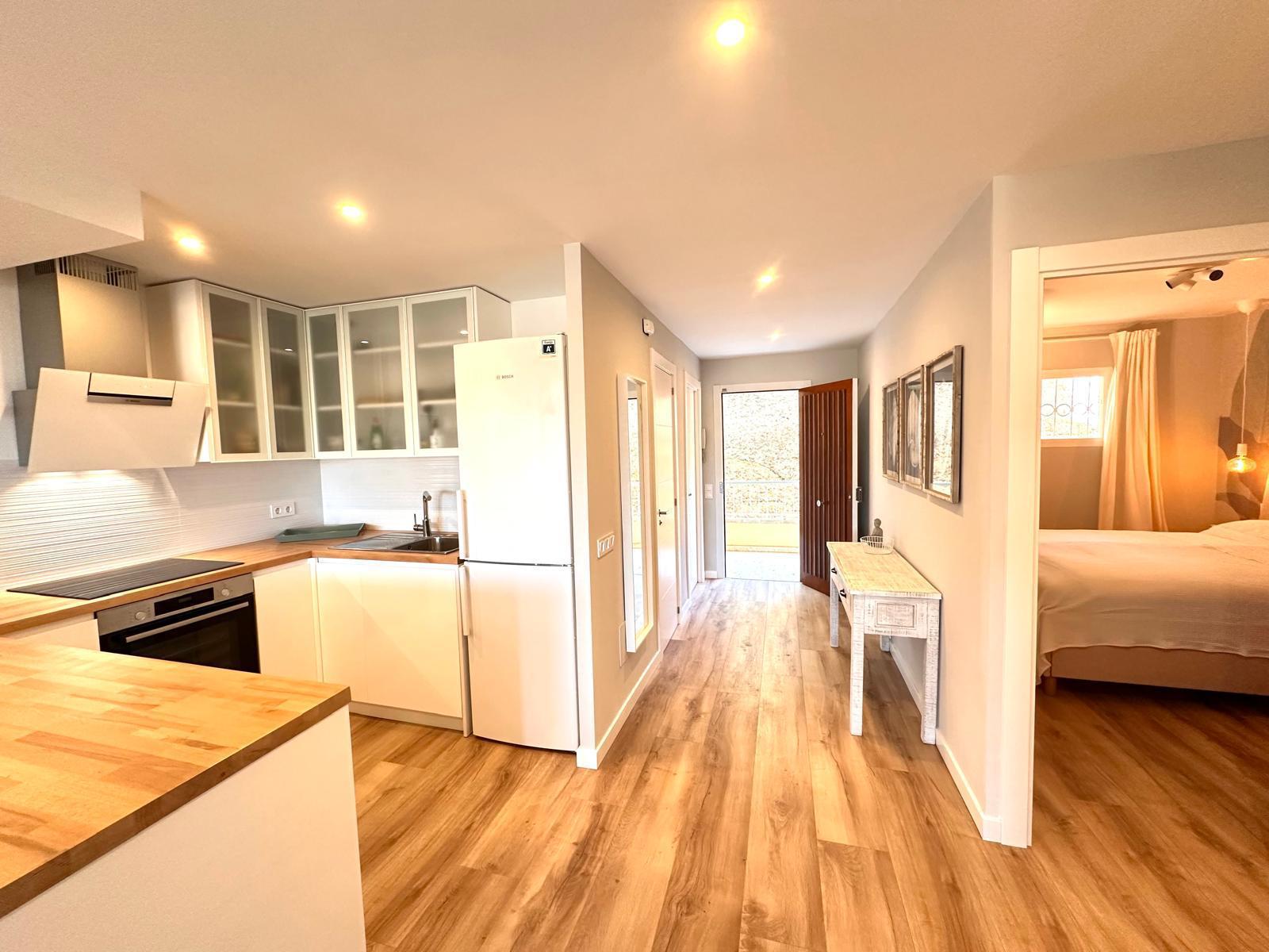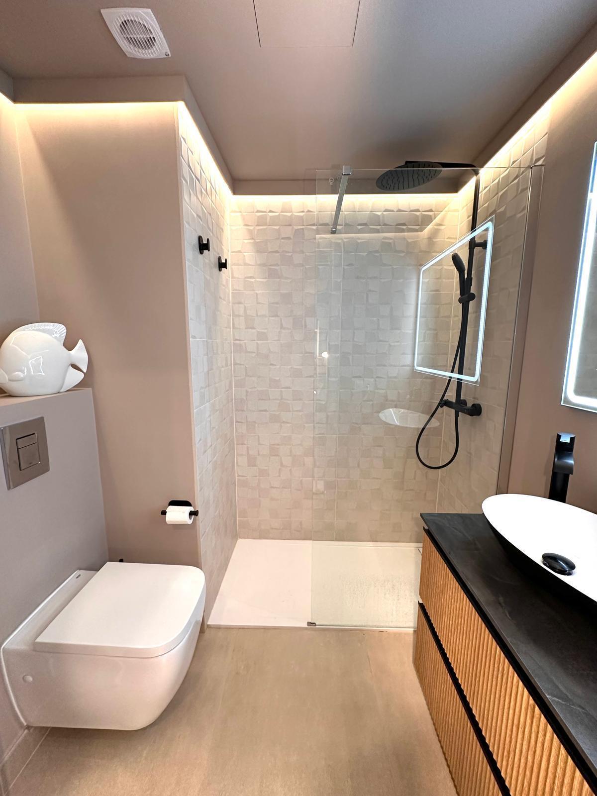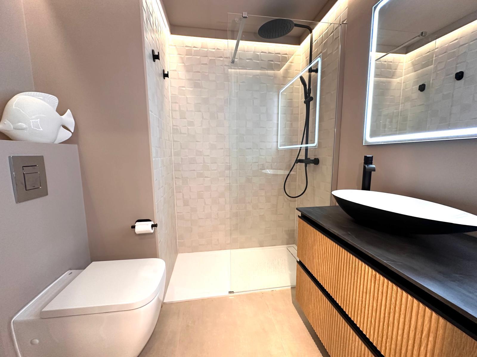 Diese neu renovierte Immobilie bietet einen hohen Standard und befindet sich in erstklassiger Lage mit Blick auf das Meer und die Berge. Mit einer optimalen Größe von 83 m² verfügt sie über eine hochwertige und moderne Ausstattung, die auf Wunsch auch komplett möbliert sein kann. Die offene und helle Raumaufteilung ermöglicht einen direkten Zugang zu einem großzügigen Balkon. Die offene Wohnküche ist mit modernen Geräten und einer großzügigen Arbeitsfläche ausgestattet. Es gibt zwei Schlafzimmer, die beide Zugang zum Balkon haben, sowie zwei moderne Badezimmer, die mit passiver Deckenbeleuchtung und Mosaiken gestaltet sind. Zusätzlich gibt es eine Waschküche mit Anschluss für eine Waschmaschine. Besondere Merkmale sind eine dekorative Akustikwand mit einem Smart-TV im Wohnzimmer, ein großer Einbauschrank im Hauptschlafzimmer und eine Alarmanlage mit Videostreaming auf das iPhone. Alle Zimmer sind mit einer Klimaanlage (warm/kalt) ausgestattet. Das nagelneue Inventar, einschließlich einer maßgefertigten Küche, ist im Kaufpreis enthalten. Der Energieausweis sowie alle erforderlichen Unterlagen sind vorhanden und werden bei der Besichtigung vorgelegt. Im Innenhof der ruhigen Anlage gibt es einen Gemeinschaftspool mit Dusche und Sonnenliegen. Die Bewohner sind freundlich und ruhig. Ein exklusiver, schattiger Parkplatz kann für 25.000 € erworben werden. Gemeinschaftskosten pro Monat: 100 € inkl. Wasser Strom / Monat: 45 € ca., nach Verbrauch
