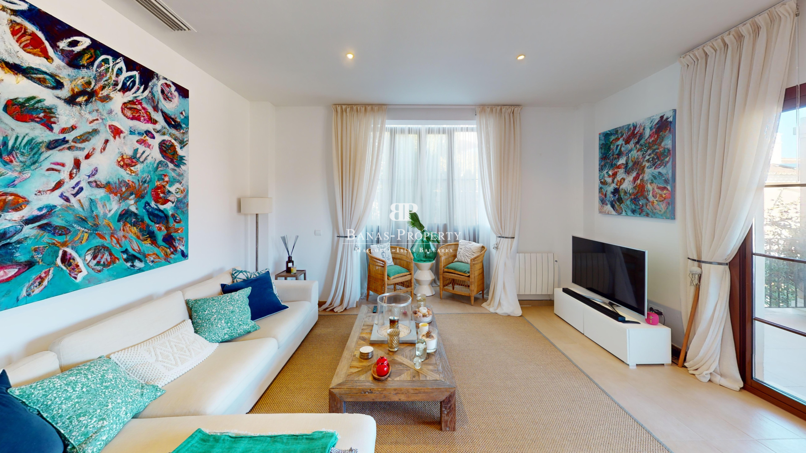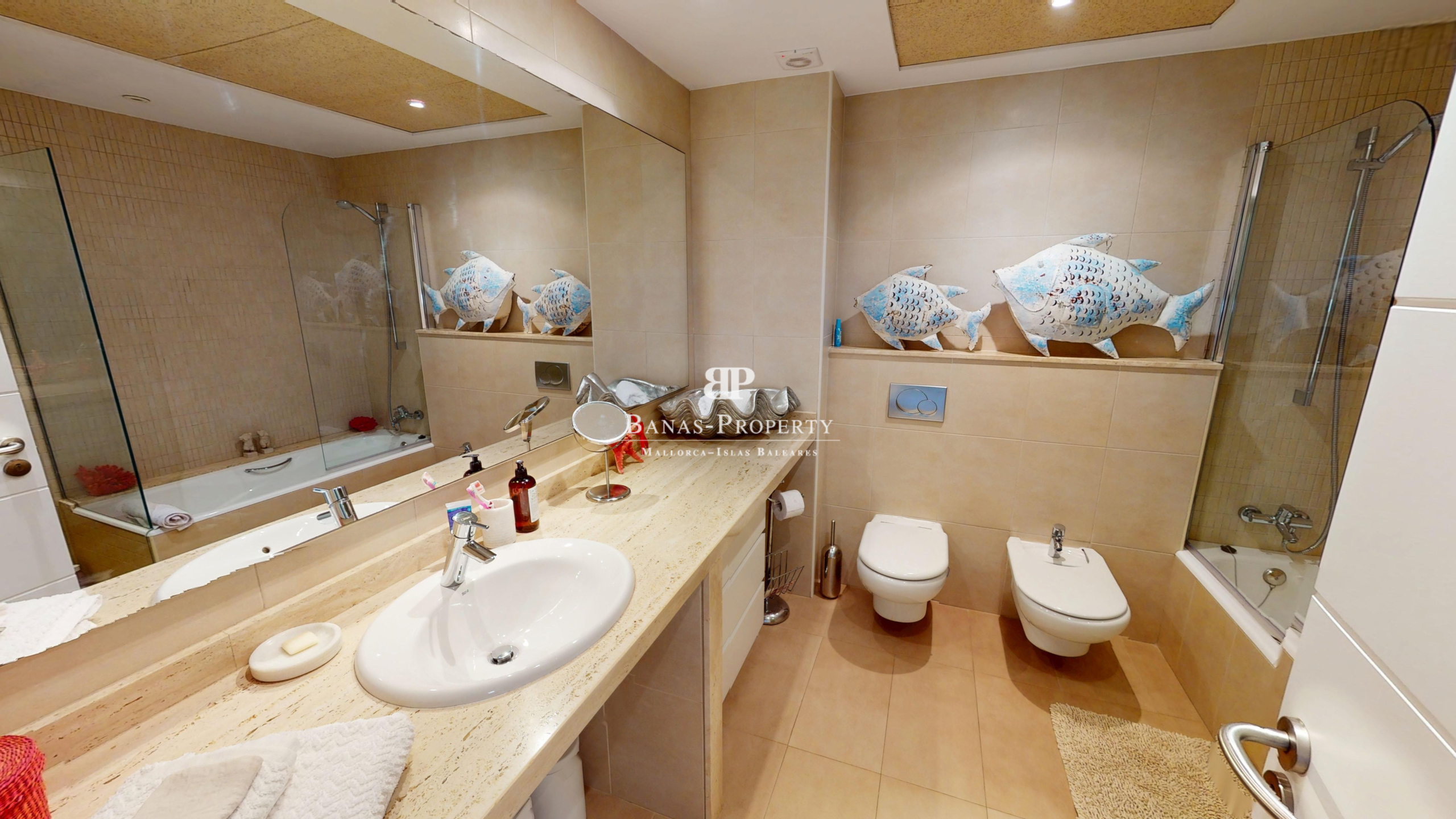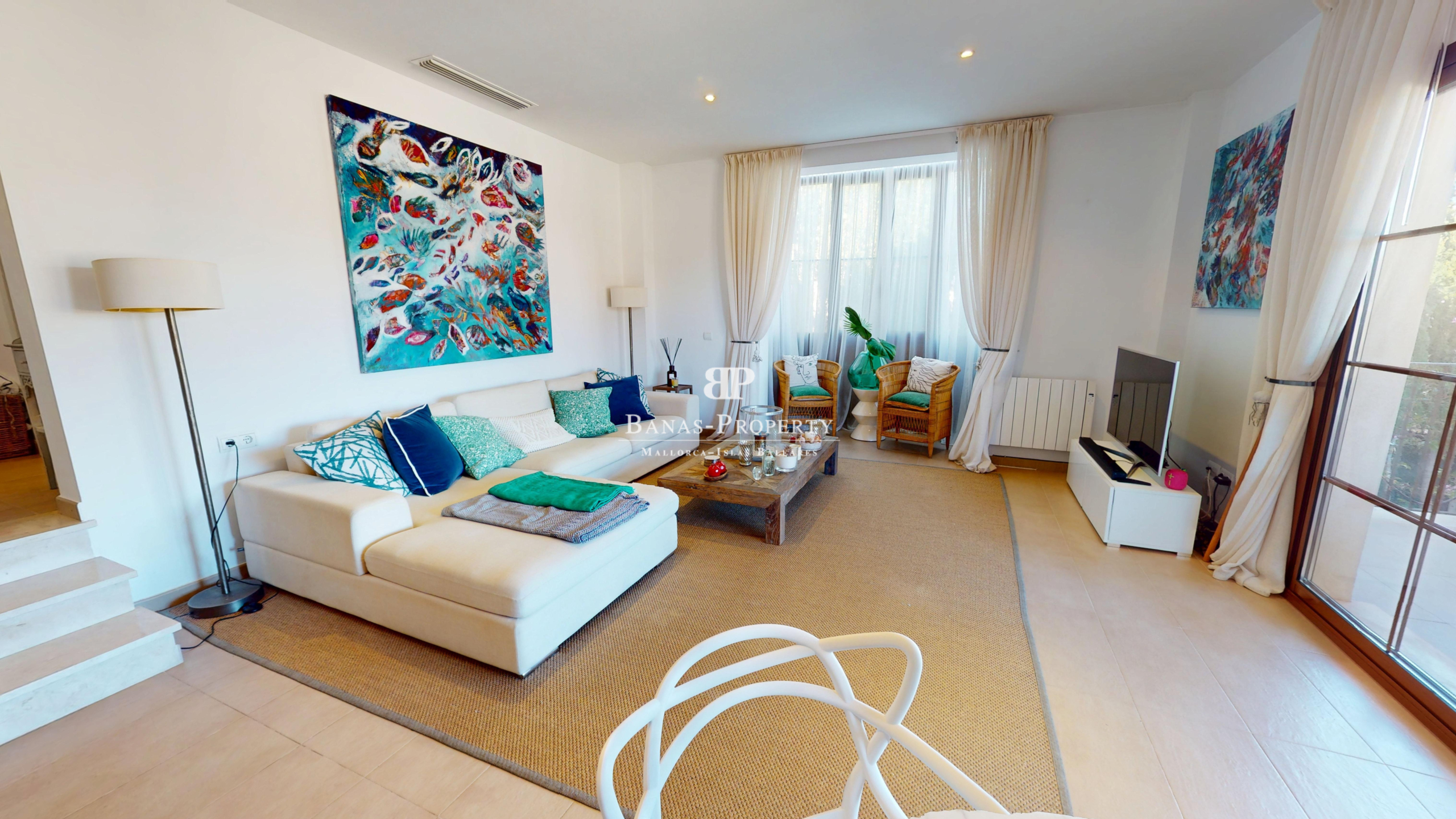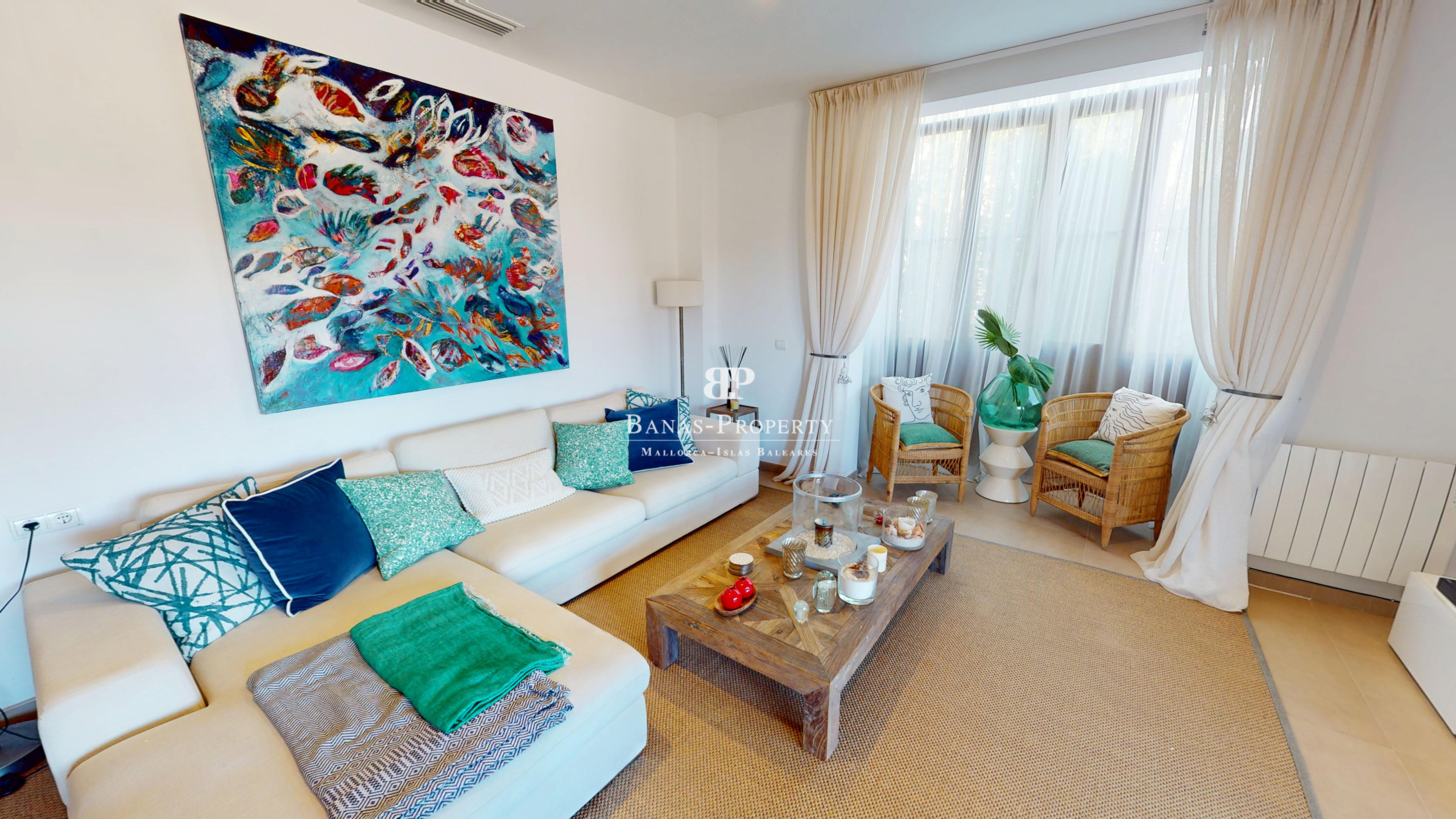 Diese exklusive Wohnanlage bietet wunderschön gepflegte Gärten und drei glitzernde Swimmingpools, die eine Atmosphäre wie in einem Resort schaffen. Die erstklassige Lage ist nur einen kurzen Spaziergang vom Sandstrand entfernt, sodass Sie das Beste vom Küstenleben Mallorcas genießen können.