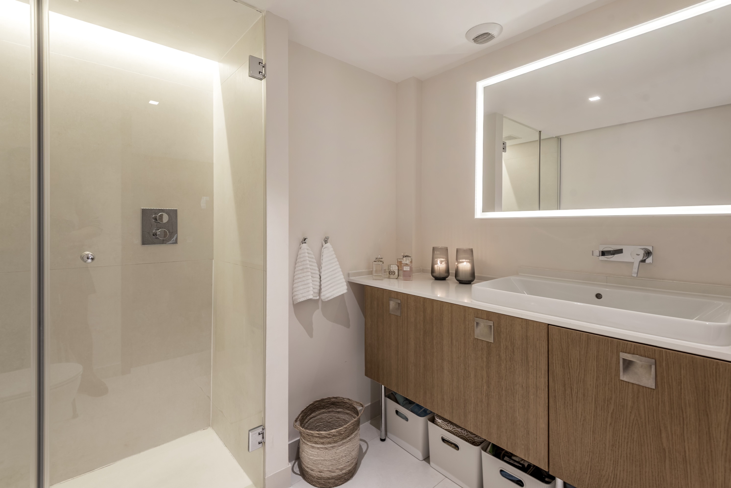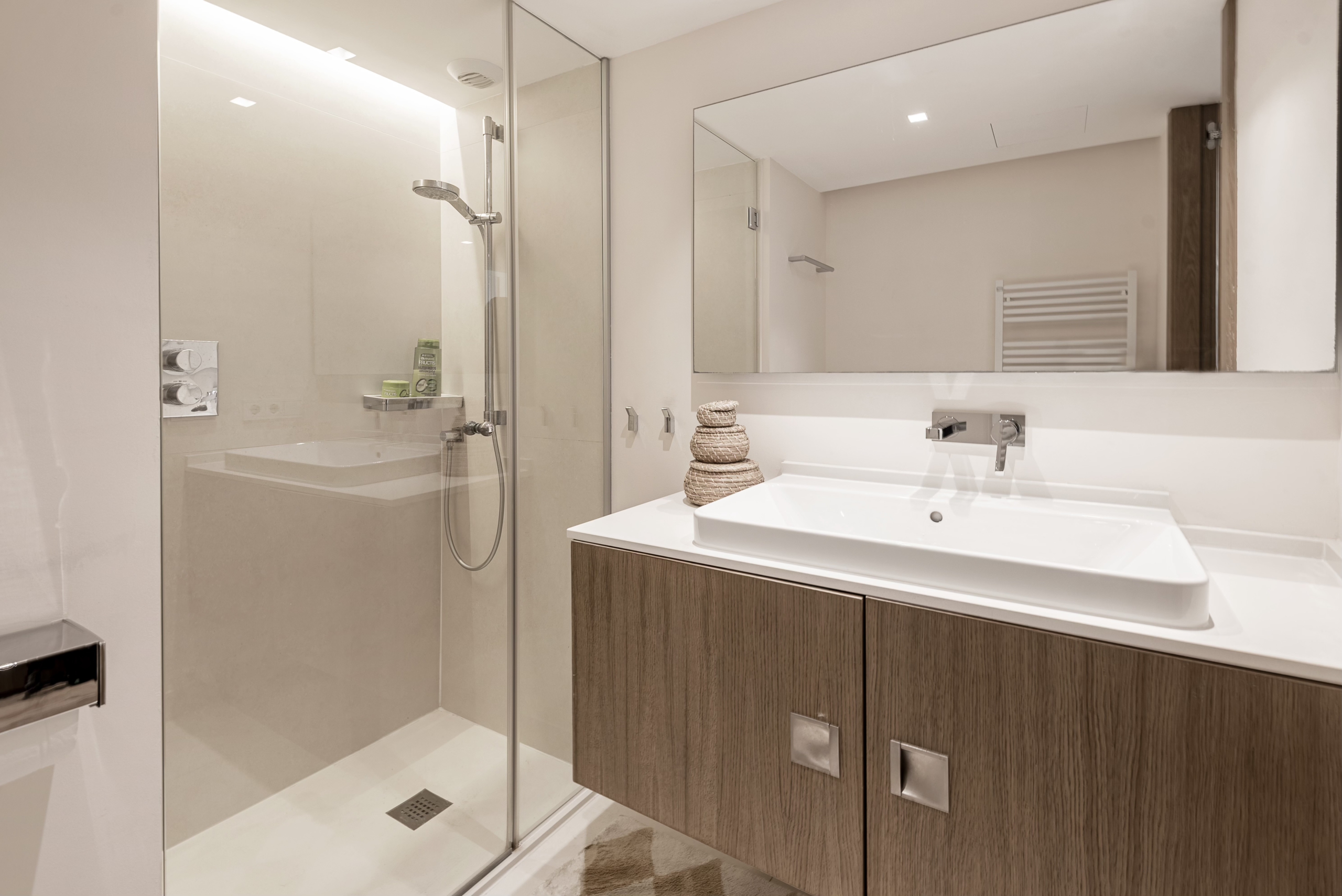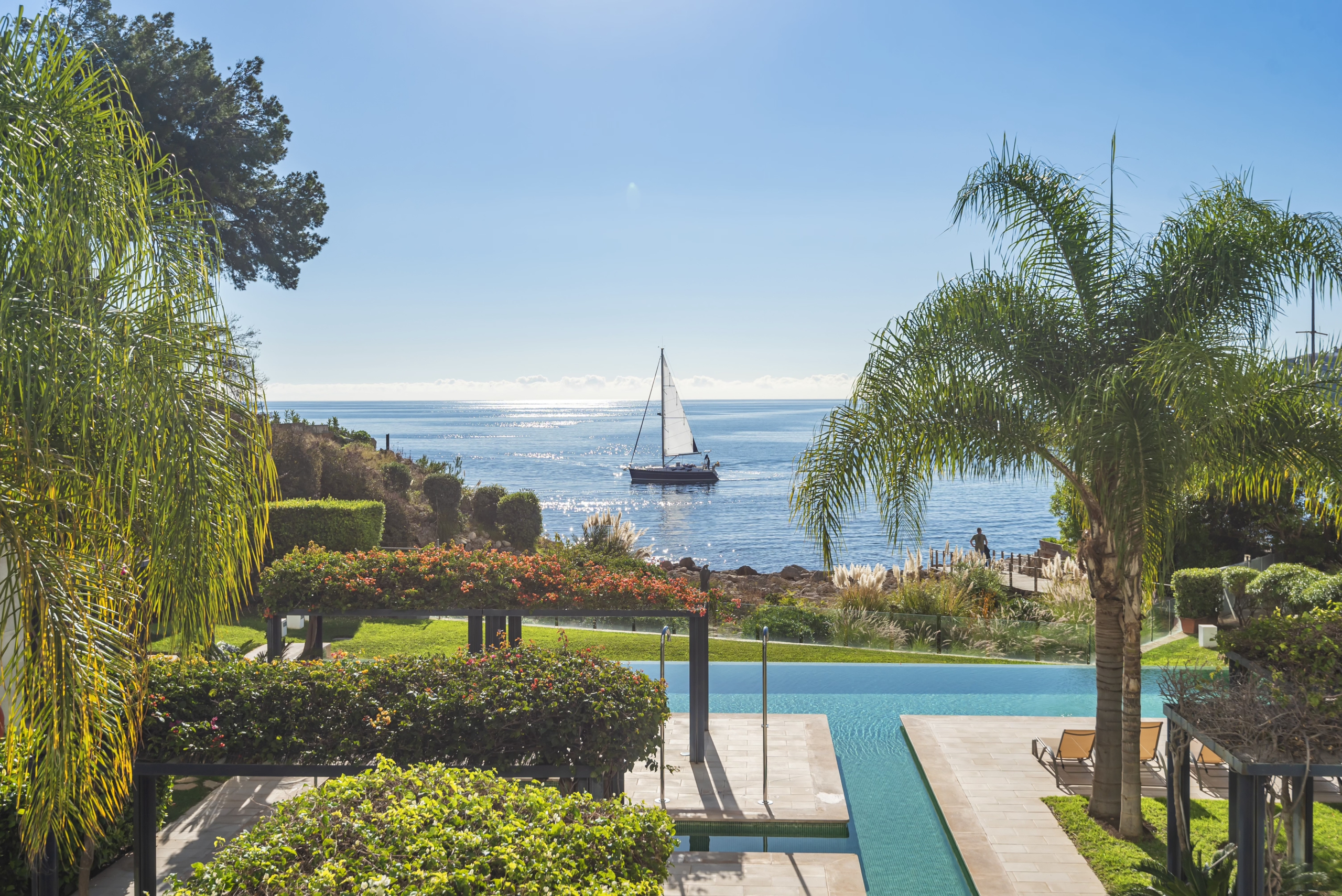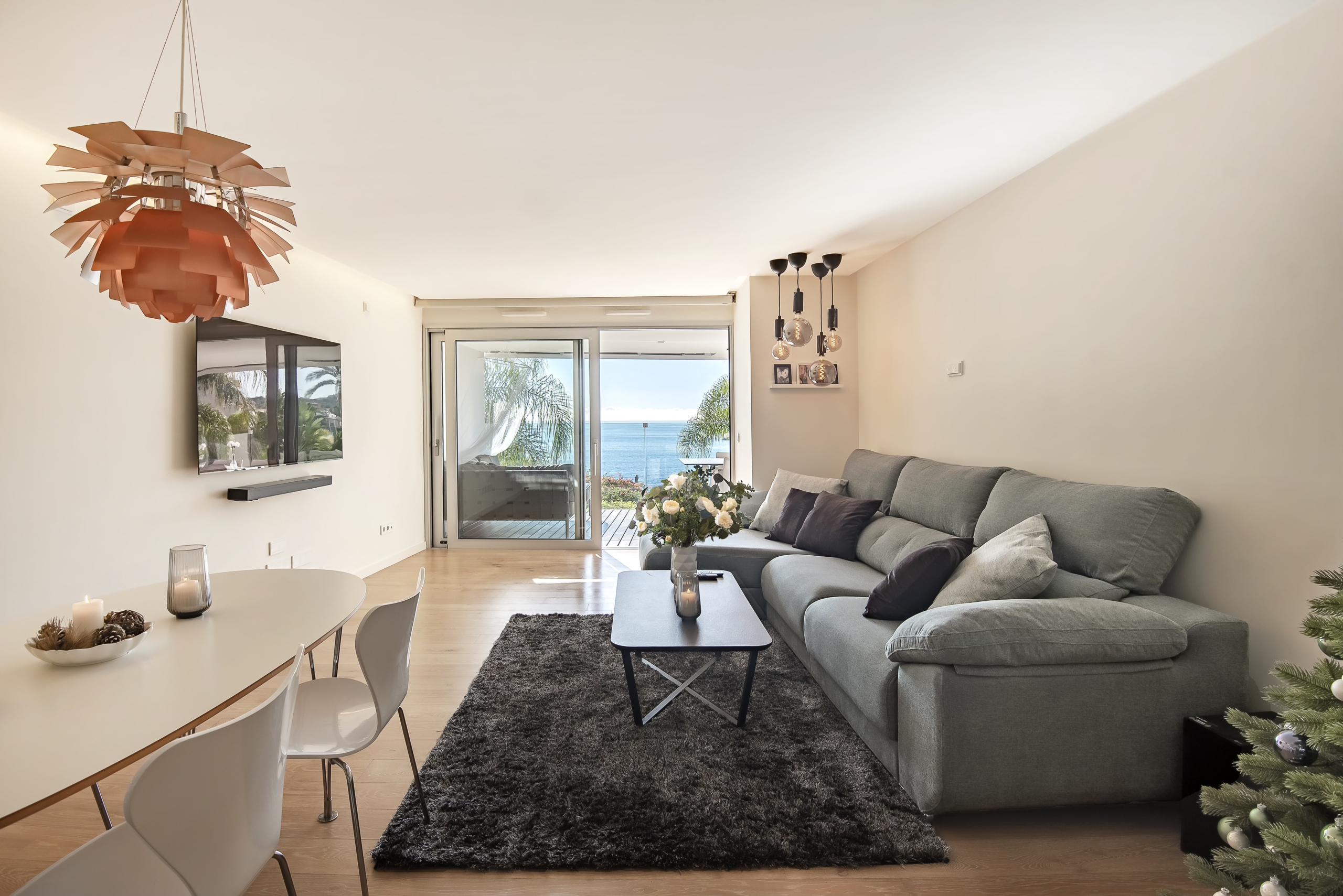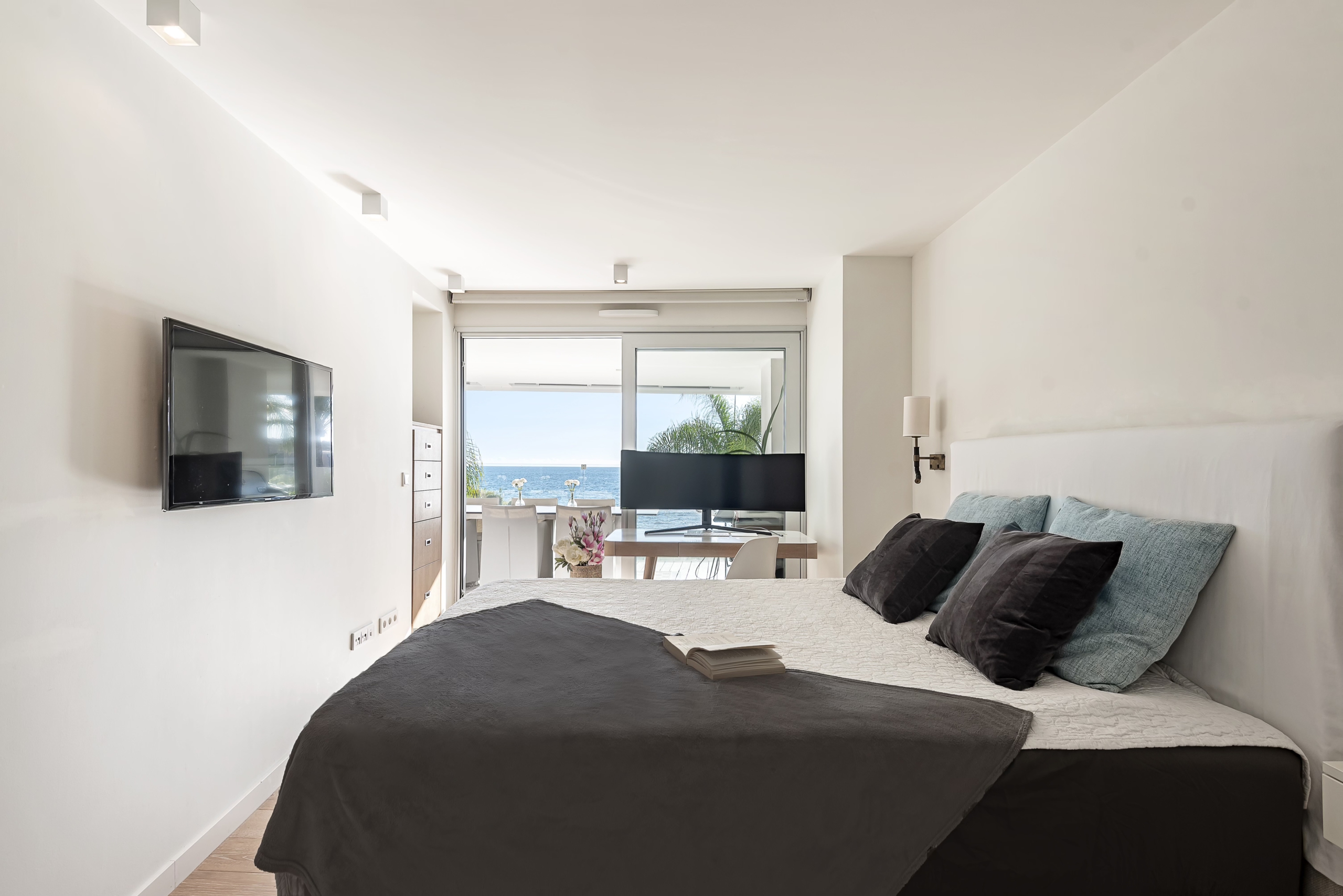 Moderne Neubauwohnung mit fantastischem Meerblick und Strandzugang. Zeitloses, minimalistisches Design mit hochwertiger Ausstattung. Große, raumhohe Fensterfronten erzeugen ein helles, transparentes Wohngefühl. Modernste Haustechnik mit Fußbodenheizung. Die Wohnanlage verfügt über Gemeinschaftspool, Hallenbad, Fitnessbereich sowie einen 24 Stunden Sicherheitsdienst. Zwei Schlafzimmer,, davon Bad enuite . Und ein separates Schlafzimmer.